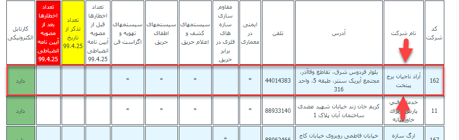 و زیر نظر سازمان آتش نشانی شهر تهران و در وندور لیست این سازمان قرار دارد . .
